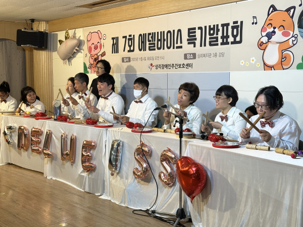 장애인주간보호센터 제 7회 특기발표회 페이지 정보 작성일 25-11-04 17:26 본문 제 7회 에델바이스 특기발표회 - 공연순서 - 1. 오카리나 솔로 & 듀엣 연주2. 텅드럼 '똑같아요', '나는 행복합니다' 합주3. 아기돼지 삼형제 음악극 4. 선생님과 함께 '흰수염 고래' 합창↑ 오카리나 연주 (이용자 & 오카리나 동아리 듀엣)↑ 오카리나 연주 (이용자 솔로)↑ 텅드럼 합주 (똑같아요, 나는 행복합니다)↑ 아기돼지 삼형제 음악극↑ 흰수염고래 합창 (이용자 & 선생님)↑ 이용자 & 보호자 & 직원 단체사진↑ 미술활동 이용자 작품전시회↑ 특기발표회 포토존 (보호자와 사진 촬영)상리장애인주간보호센터에서는 부산시 중앙도서관의 지원을 통해매주 화요일 음악활동을 진행하였습니다.그동안 갈고 닦은 실력을 바탕으로 이번 특기발표회를 열어이용자 분들의 멋진 공연과 성장을 함께 나누는 시간을 가졌습니다.♡ 함께 노력해주신 모든 분들께 감사드립니다 ♡ 목록 다음글방문요양 이용자 황산공원 국화축제 가을나들이 25.11.04 문의하기 Top